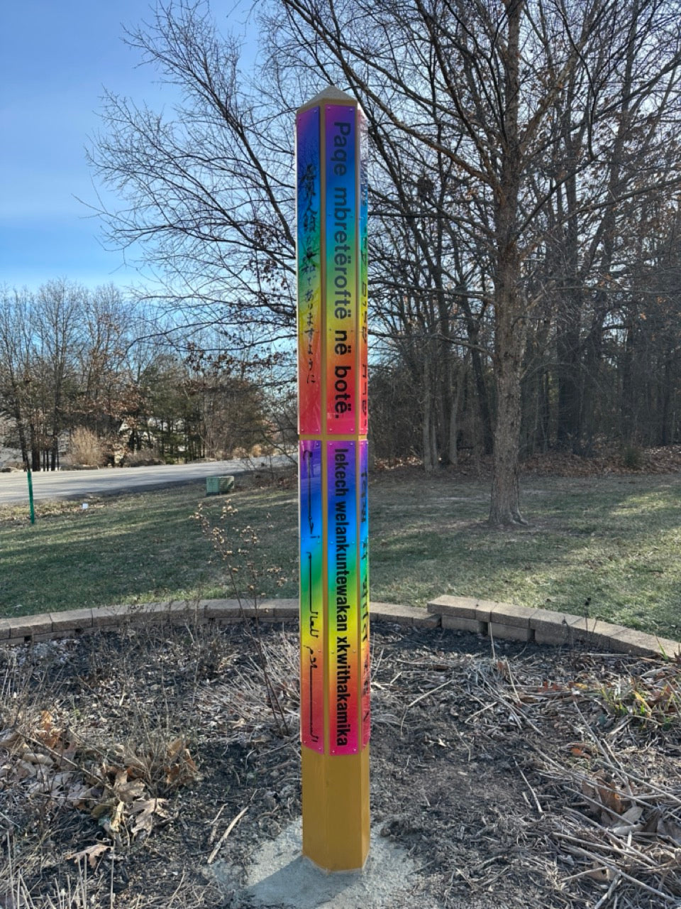 12 Plexiglass Rainbow Plaques are uniquely showcased on this 8’ Peace Pole and include your choice of more than 50 standard languages and hundreds of specialty languages with options for stain finishes in Original, Up North, and White. Please refer to the Installation and Care section so the fine craftsmanship of your Peace Pole provides many years of enjoyment.